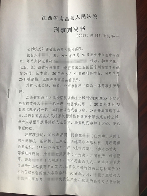 近日,由团队成员汪美珍、杨盟律师代理的李某涉嫌生产、销售假药罪一案,公诉机关指控犯罪情节特别严重(按照刑法规定有可能在十年以上有期徒刑量刑)。经南昌县人民法院依法审理,最后采纳辩护人关于李某系从犯、坦白、认罪态度好等辩护意见,最终在法定刑以下减轻处罚,轻判四年。